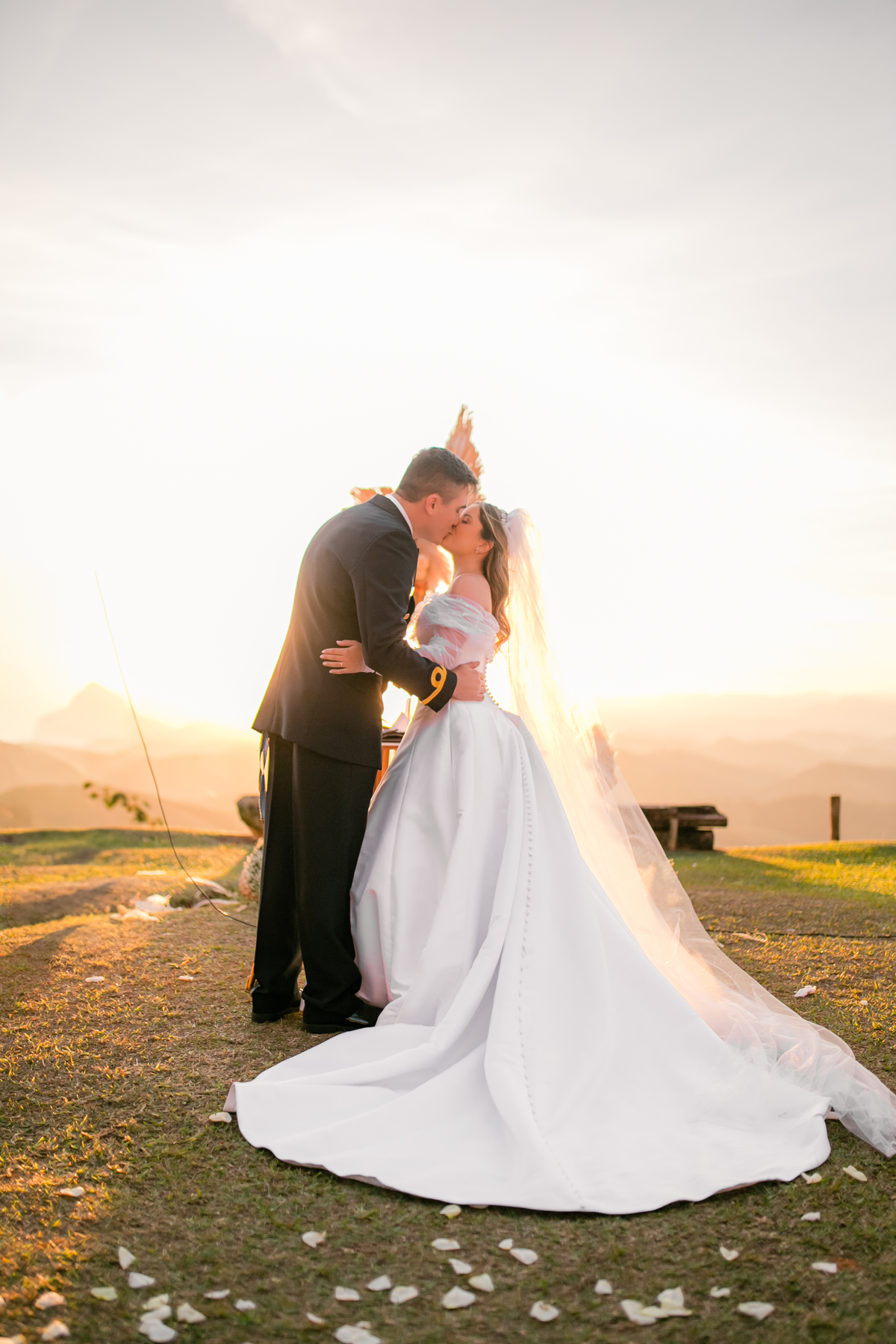 Casamento Vestido de Noiva Por do Sol Amor Noivos Montanha Emoção Casamento Luxo